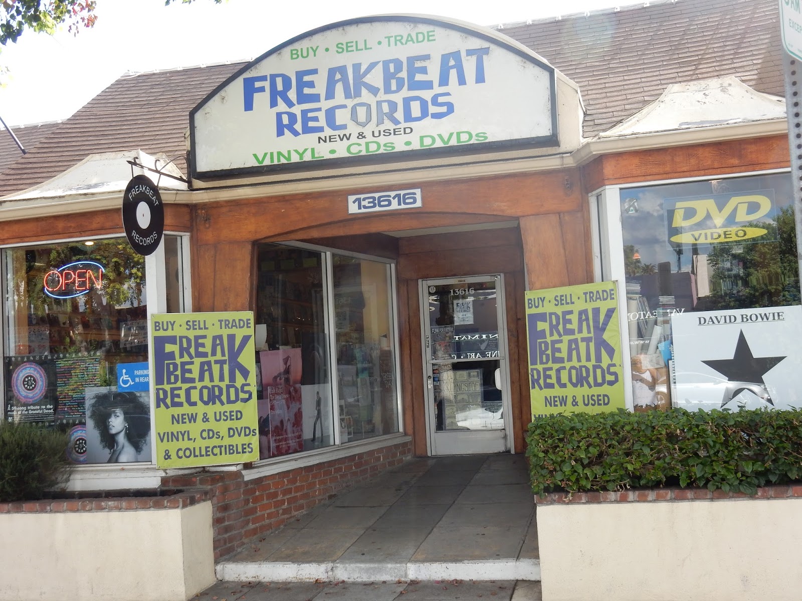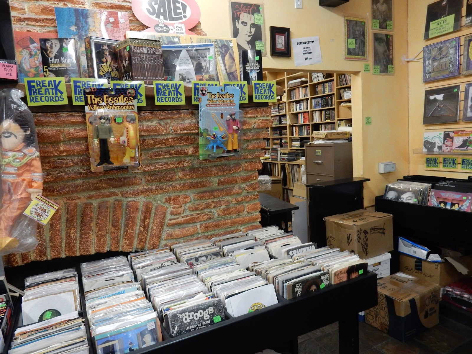 Freakbeat Records – 13616 Ventura Blvd., Sherman Oaks, Los Angeles Ca. 91423 – open – now with a 4.4 star rating in Yelp reviews on a 1-5 scale (see below).