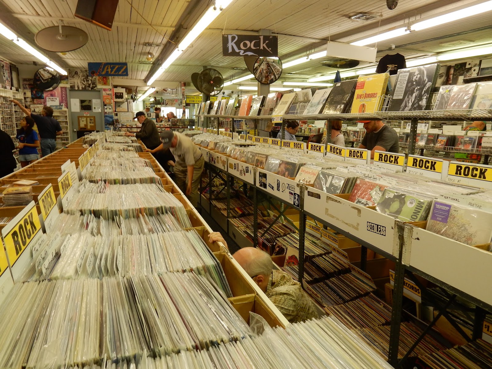 Recently returned to what has long been rated as one of America’s top record stores – Princeton Record Exchange. It was on Rolling Stone magazine’s 2010 list of the 31 best record stores in the US. And as the sign in the store’s window will tell you, on many others as well. As advertised, it had tons and tons of records (and Cds and cassettes for those interested). It had rock and soul and rap and 45s and more. But most of all it had PEOPLE! Old people, young people, men, women. In a record store. Unbelievable. According to one article, on an average weekday, 500-600 people visit the store, and double that amount on a weekend.